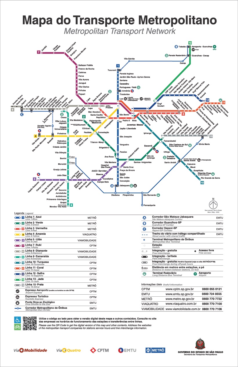 Linhas do transporte metropolitano sobre trilho